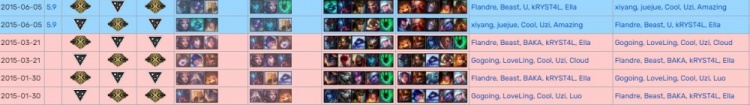 Flandre此前在Snake战队,一共有14个大场面对Uzi但是全部失利。而在2015年LPL施行BO2赛制时,圣枪哥和Uzi所在的OMG全部以1-1打平。