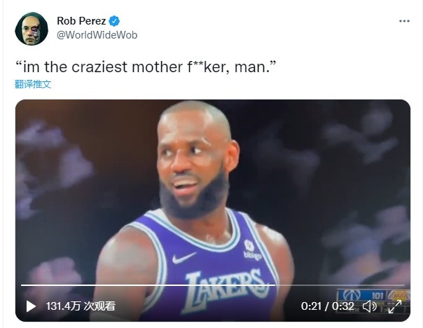 知名媒体人更新社交媒体,解读出了詹姆斯昨日砍下50分后所说的话:“im the craziest mother f**ker, man.(我是最疯狂的那个混蛋,老兄!)”