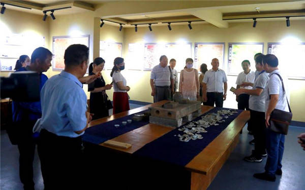 当作家们来到社区办公室前,只见下关村的6名社工正在排演迎“七·一”诗朗诵,大家驻足聆听观看,并为精彩的演出鼓掌赞美。接着,作家们参观了通过下关人自发地捐款创建了的历史文化博物馆,里面陈列着下关人在古代用过的生活物件、各种契据等,陈列着展现古下关和近现代下关的自然风貌、人物风貌的字画等。在参观中,下关志愿者王爱兵为作家们进行了声情并茂的讲解。