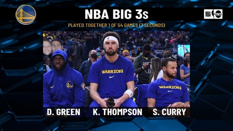 转播方TNT统计了本赛季四大热门球队的三巨头合体时间: