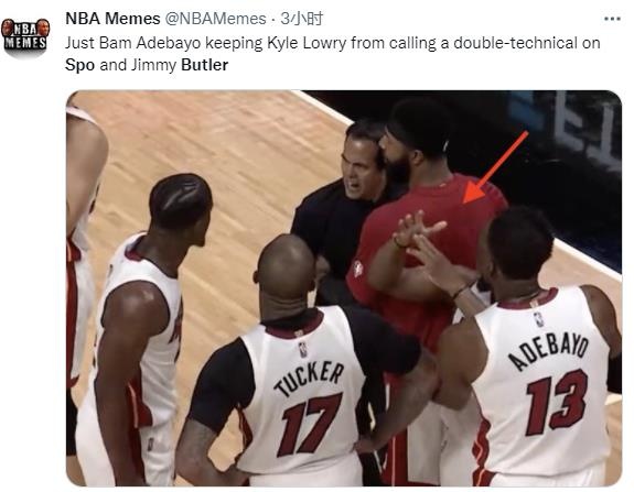 事件经过:斯波与巴特勒在替补席略有争论,哈斯勒姆冲出来对着巴特勒就是一通狂喷,随后两人进行了语言冲突,哈队情绪非常激动。斯波一开始也想劝人,未果后直接怒摔战术板加入了争吵行列。