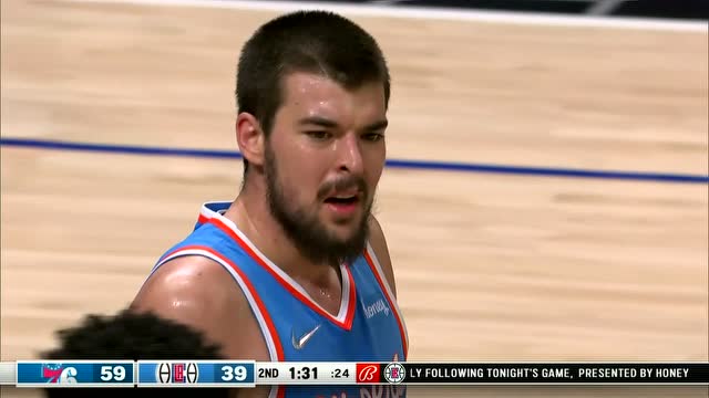 次节上来,哈尔滕施泰因上来继续追分,考文顿扬手三分也能进,快船追到差10分,马克西抛射终于帮助76人止血,哈登顶投三分也能扔进稳住局势,双方命中率都有下降,科克马兹上来再中三分又拉开18分分差。暂停回来,小莫里斯的中投和巴图姆的三分继续追分,但哈登手感火热又站出来接连扔进三分强势回应,随后自己又自投自抢打成2+1将分差重新拉开至20分以上,雷吉准压哨造杀伤继续止血,半场结束,76人64-43继续领先快船21分。