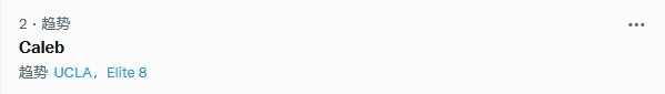 直播吧3月26日讯NCAA疯狂三月16强战,北卡大学以73-66击败UCLA,挺进精英八强。比赛关键阶段,北卡后卫凯莱布-乐福命中两记三分和两记罚球,带领球队逆转获胜。赛后,凯莱布-乐福的名字也冲上了