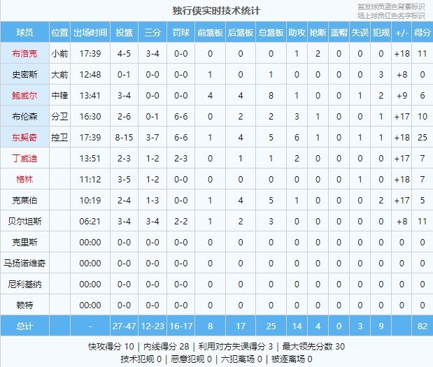 值得一提的是,半场丢82分创下湖人本赛季新高,湖人全队半场三分15投仅3中,而独行侠三分23投12中。