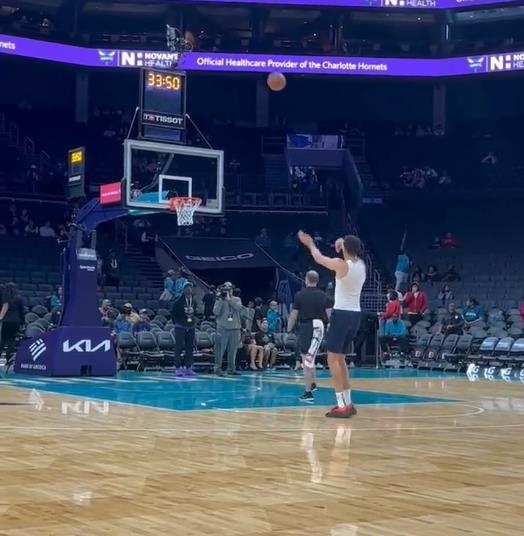 小波特随队前往了步行者和黄蜂的主场,在昨天对阵黄蜂队的比赛之前,他进行了赛前常规投篮训练。