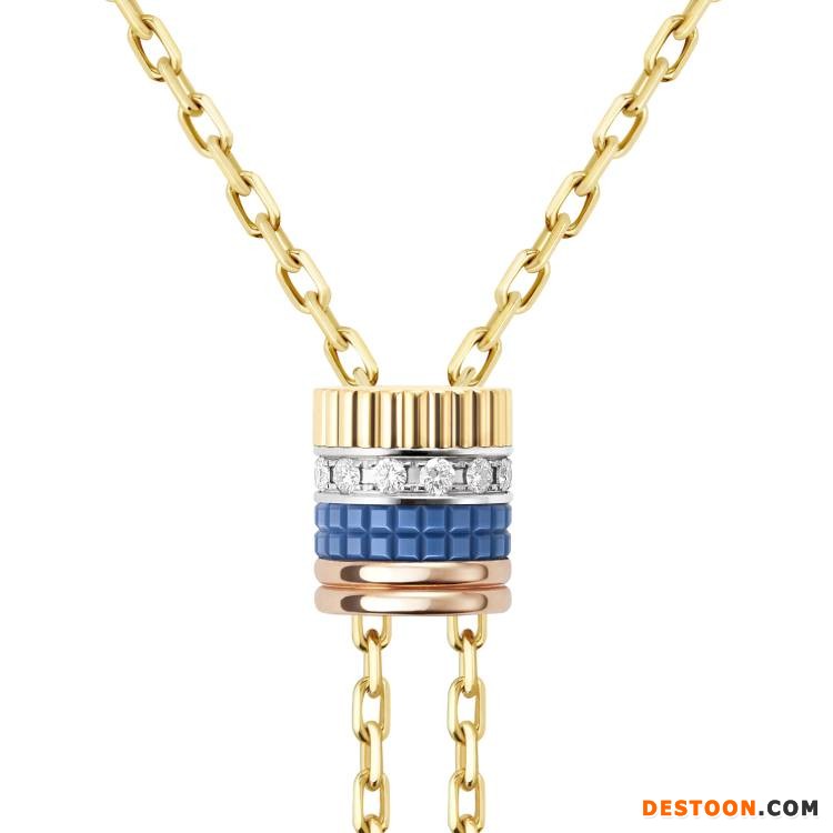 同样引人注意的是2件「Quatre Blue」和「Quatre White」长项链——最大亮点是「巴黎钉纹」运用蓝色或白色高精密陶瓷作为宝石材质,一抹亮色营造出丰富的视觉层次;长项链的环扣挂坠可自由滑动,轻松调节项链长度。