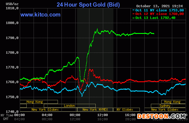 FX168财经报社(北美)讯 周三(10月13日),黄金和白银价格强劲上涨,两种贵金属价格均达到四周高点。