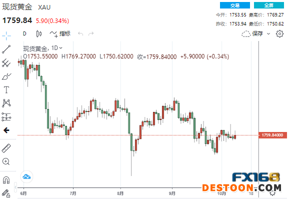 COMEX 12月黄金期货收涨0.21%,报1759.30美元/盎司。