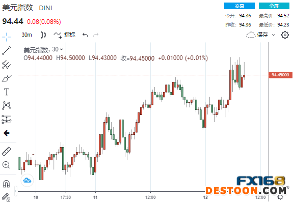 (美元指数30分钟走势图 来源:FX168)