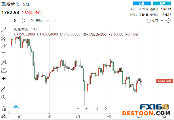 1.ActivTrades技术分析师Pierre Veyret在一份报告中称:“黄金无法利用当前的避险交易态势。(黄金)市场必须清除1765-1770美元区间,才能打开进一步涨向1777美元和1790美元的大门。”