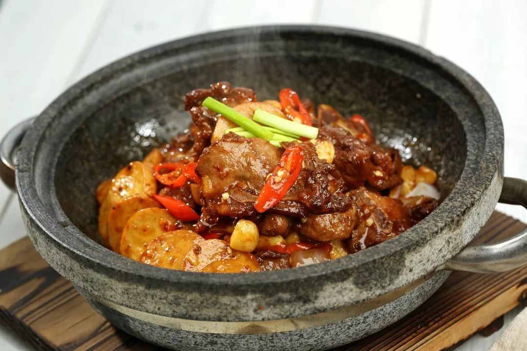 石锅蒜香仔排:可别小看了这份石锅,特选的猪仔排,秘料腌制后再过油炸。严格控制杏鲍菇大小,还要放入炸蒜提鲜。和一般排骨不同,仔排被切成薄片状,这样是为了更好的入味,入口嫩香多汁,微辣咸香,即使不能吃辣的人也可以hold住。