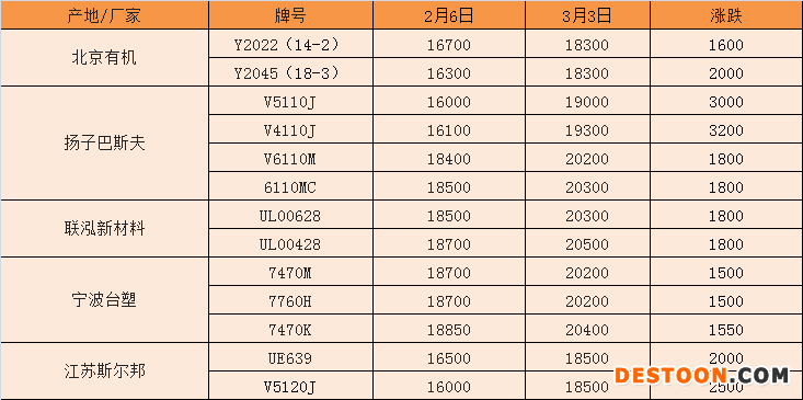 一,上游原料方面:由表2数据可见,节后上游市场价格呈普涨态势,尤其是23日单日大涨90美元/吨,实属罕见,成本支撑力度强劲,不仅增强了市场信心,也为EVA大涨提供了底气。