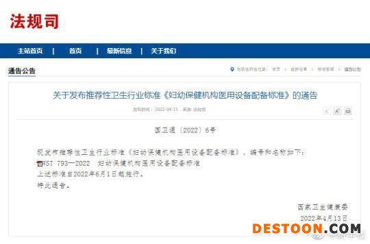 15日,国家卫健委发布推荐性卫生行业标准《妇幼保健机构医用设备配备标准》,该标准自2022年6月1日起施行。标准确立了各级妇幼保