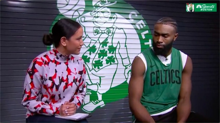4月15日讯 今日凯尔特人球员杰伦-布朗在接受NBC体育的专访时谈到了即将在季后赛后轮面对的前队友欧文和篮网。