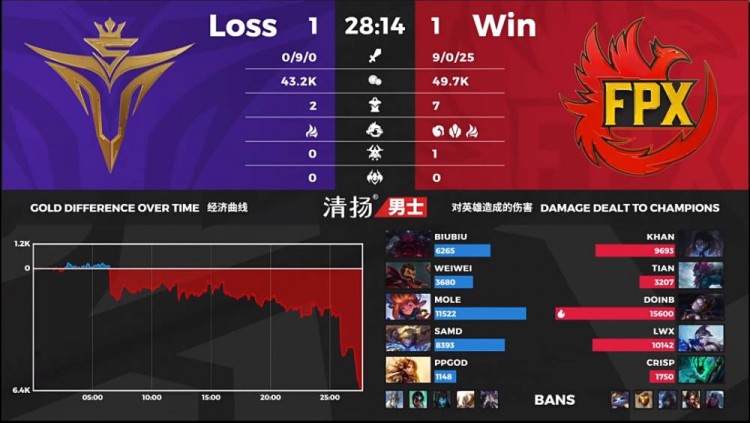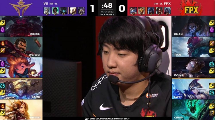 6月29日讯 LPL夏季赛来到今天的第二场比赛,本场将由FPX对阵V5。