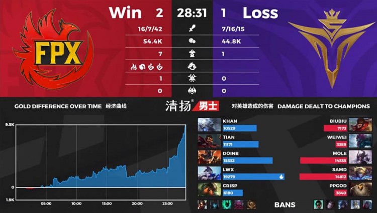 【28:00】FPX推进高地,强冲门牙塔收掉了辛德拉、巴德后推掉基地结束比赛。