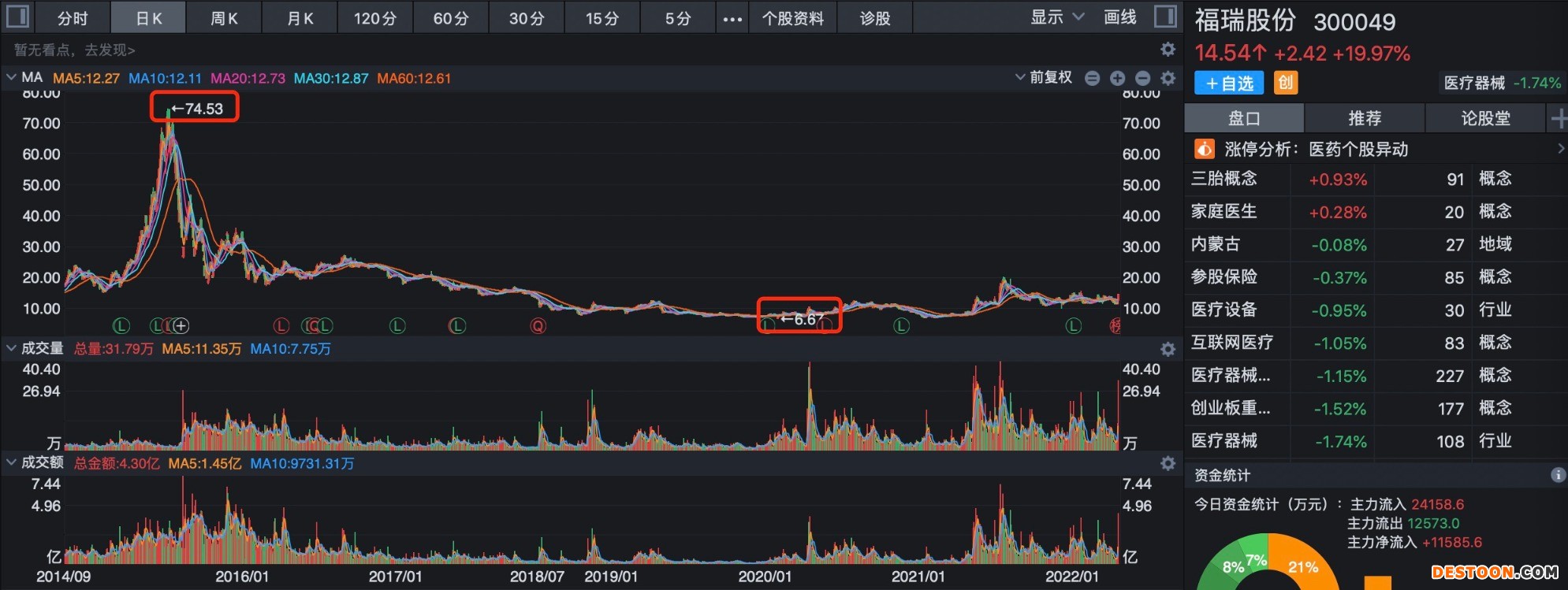 近期,欧美多个国家报告当地出现多起不明原因的儿童肝炎病例。A股肝病诊治龙头福瑞股份盘中冲高,上午股价一度涨超15%,午后,在消息进一步刺激下“20CM”涨停直至收盘,近三个交易日内累计最大涨幅近30%。另一只概念股广生堂收盘涨超7%。