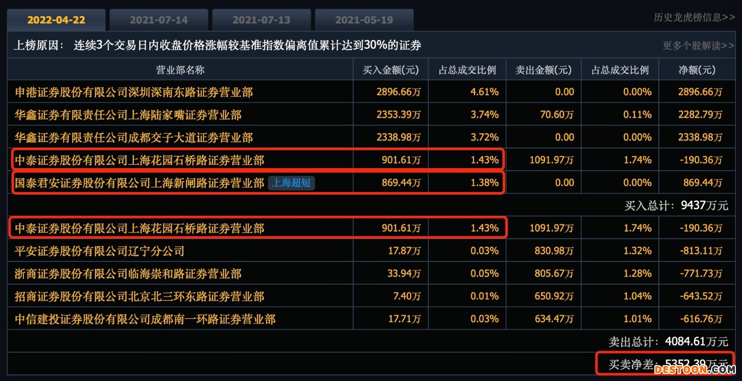 背后又有哪些资金在“兴风作浪”?福瑞股份盘后公布的一日榜数据显示,龙虎榜资金净买入5352.39万元。中泰证券上海花园石桥路做T,分别位列买四和卖一。知名游资上海超短帮国泰君安证券上海新闸路位列买五席位。