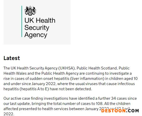 英国卫生安全局21日说,英国境内又发现34例不明病因的儿童肝炎病例,使目前英国同类病例总数达到108例,其中8人因病情严重已接受肝脏移植。