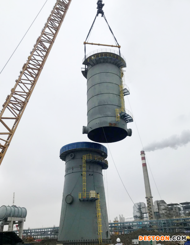 4月15日,中化六建第五分公司承建的宁波金发一体化新材料项目60万吨/年PDH装置产品分离塔第二段吊装成功。