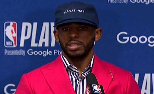 赛后太阳球星保罗接受了采访,只见保罗头戴一顶写着“助攻达人(assist man)”的帽子出席新闻发布会。