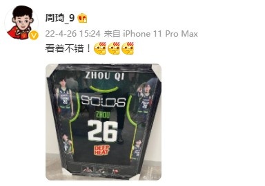 直播吧4月26日讯澳大利亚国家联赛(NBL)东南墨尔本凤凰队球员周琦发博晒出自己的球衣挂像并写道:“看着不错!”随后,山东男篮球员高诗岩评论道:“退役了啊?”周琦则是打趣回复:“儿子不想爸爸吗?”高诗