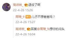 周琦则是打趣回复:“儿子不想爸爸吗?”