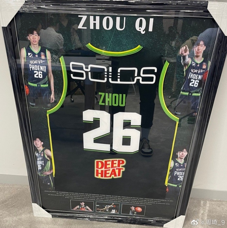 4月26日讯 澳大利亚国家联赛(NBL)东南墨尔本凤凰队球员周琦发博晒出自己的球衣挂像并写道:“看着不错!”