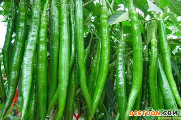 属中熟长线椒品种。植株生长势较强,株型好,分枝多,叶片小,果顺直,长22厘米左右,果宽约1.5厘米。青果深绿色,老熟果红色鲜艳,果实硬度好,耐储运,口感好,辣味浓,有香味,综合抗性强,适合鲜椒上市或酱制加工。
