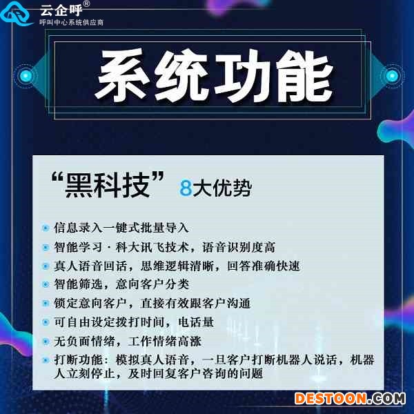 那么ok,云企呼针对以上3点重要需求开发出了人工智能电话机器人,并且能完全解决以上问题,比如日均呼出800-1000的电话量,专属话术配置做到筛选意向客户,并且可自动对筛选客户做意向等级划分。人工智能对话音调及音色完全比拟真人打电话,在与客户电话交互中时刻做大量数据对比分析,判断客户需求,即使中途打断对话,机器人依然能回归主题,让客户接到电话完全分辨不出是机器人。高呼出量对应的是高并发和话费,当然,电话机器人能做到在拨出同等电话量的情况下,客户筛选和意向客户留存率高。
