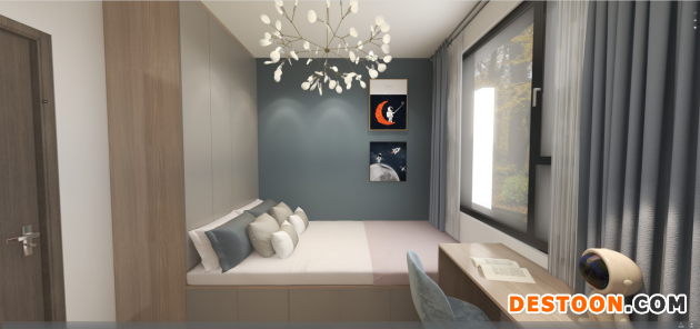 轻快的背景墙搭配整体收纳柜的简约线条,再加上灰色系地板,海尔全屋家居营造了空间整体的简约氛围,轻松就能感受到空间的美好与生活的饱满之处。