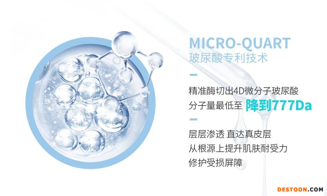 据了解,益肤凭借多年专注研究皮肤学的经验及科研成果,精研透明质酸成分,本次微分子玻尿酸系列从配方到工艺进行颠覆性创新。其独创Micro-Quart玻尿酸技术,可精准酶切出4D微分子玻尿酸,分子最低至777Da,是至今市面上最小玻尿酸。该技术还对微分子玻尿酸(分子量低于2000Da)中的四糖、六糖、八糖、十糖进行精准酶切、调配,实现微分子玻尿酸黄金配比。数据显示,这种4D微分子玻尿酸,可使经皮吸收率提升100%,屏障修护力提升375%,促进胶原再生率提升145%,实现多维度解决皮肤急救难题,直达真皮层,瞬间补水,长效保湿,从根源上提升肌肤耐受力,更加有效地修护受损皮肤屏障。
