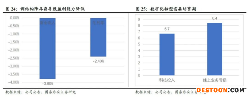 国泰君安刘越男等人在4月6日发布的研报中表示,2021年为永辉超市上市后首次年度亏损。业绩亏损主要是调结构降库存和线上化转型所致。公司总体营业收入同比下降3.8%、毛利率同比下降2.4%。此外,公司全年科技投入6.7亿元,线上业务亏损8.4亿元。