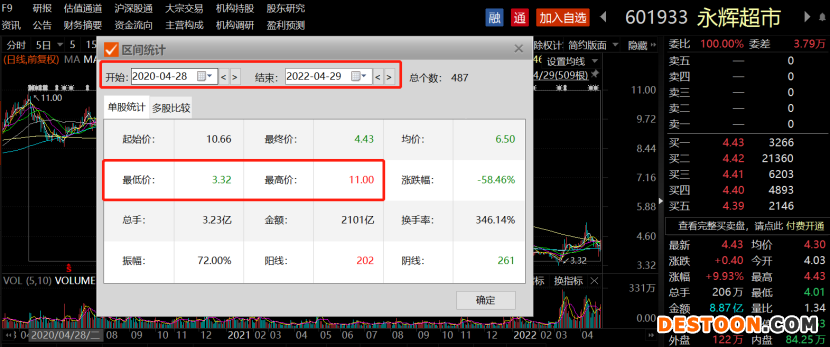 财联社4月30日讯(编辑 陈丽红),总市值超400亿、全国性超市龙头、新零售和预制菜等概念集于一身的永辉超市2020年4月创下11元的历史最高,此后股价累计最大跌幅近69.82%。不过,最近两个月提前于大盘见底,自3月8日低点迄今股价累计最大涨幅高达到57.23%。