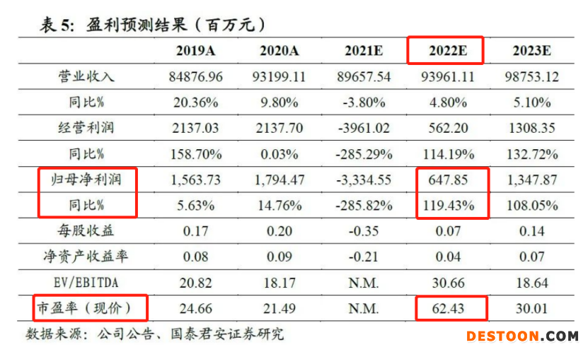 根据盈利预测与估值测算,分析师预计2022年归母净利润同比增速为119.43%,2022年PE高达62.43倍。