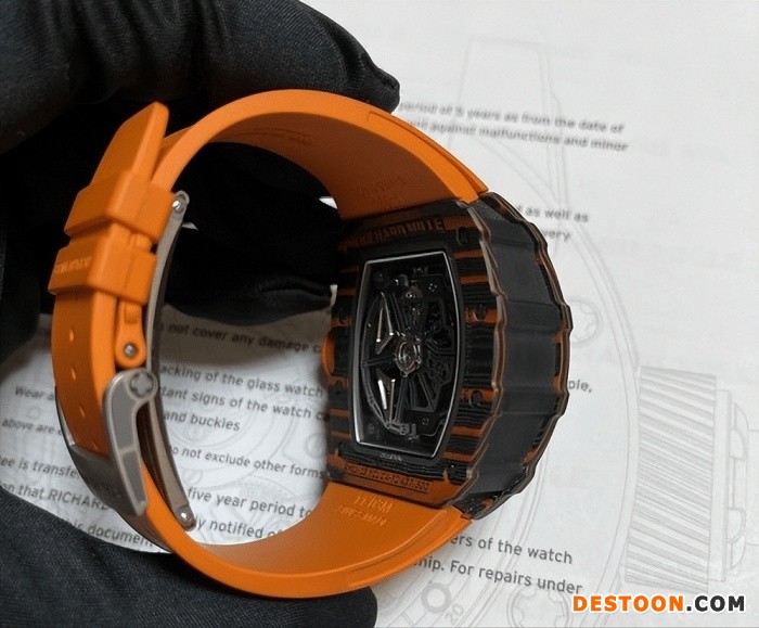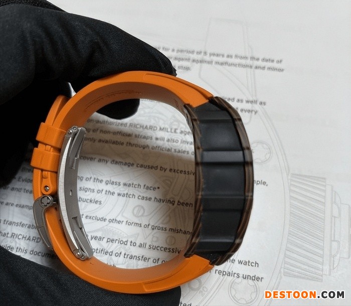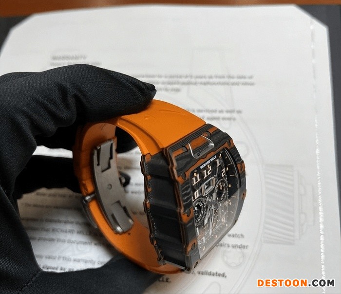 如上所述,这款全新理查德米勒RM11-03迈凯轮自动飞返式计时码表是基于RM011基础上的改造。几乎所有部件(视觉或机械部件)都有经过重新加工,具有新形状的表壳和表圈(更复杂的轮廓),这加强了手表结构完整性。这款迈凯轮版车型表壳由碳纤维TPT与橙色石英TPT交织而成,形成了一种极其耐用且轻便的表壳,可以向与迈凯轮同义的颜色致敬。详情请添加微信:RM-056