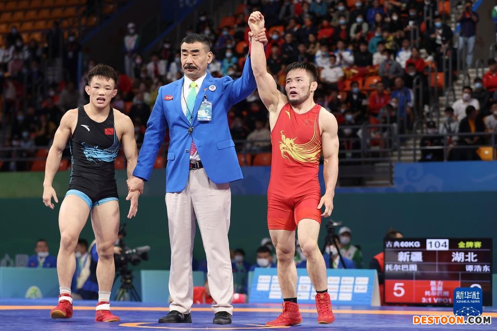 当日,在陕西延安进行的第十四届全运会摔跤项目男子古典式60公斤级决赛中,新疆队选手托尔巴图以5比2战胜湖北队选手谭浩东,夺得冠军。