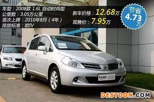 和前面介绍的飞度一样,日系两厢紧凑型的骐达良好的燃油经济性和低廉的养车,而且车体空间相对来说还是很适合家庭使用。这款车在二手车市场中的保值率比同品牌下其他车都要高,保有量也很大。便宜是08款的骐达最重要的卖点,基本上在5-6万之间,是12款车型的一半左右。