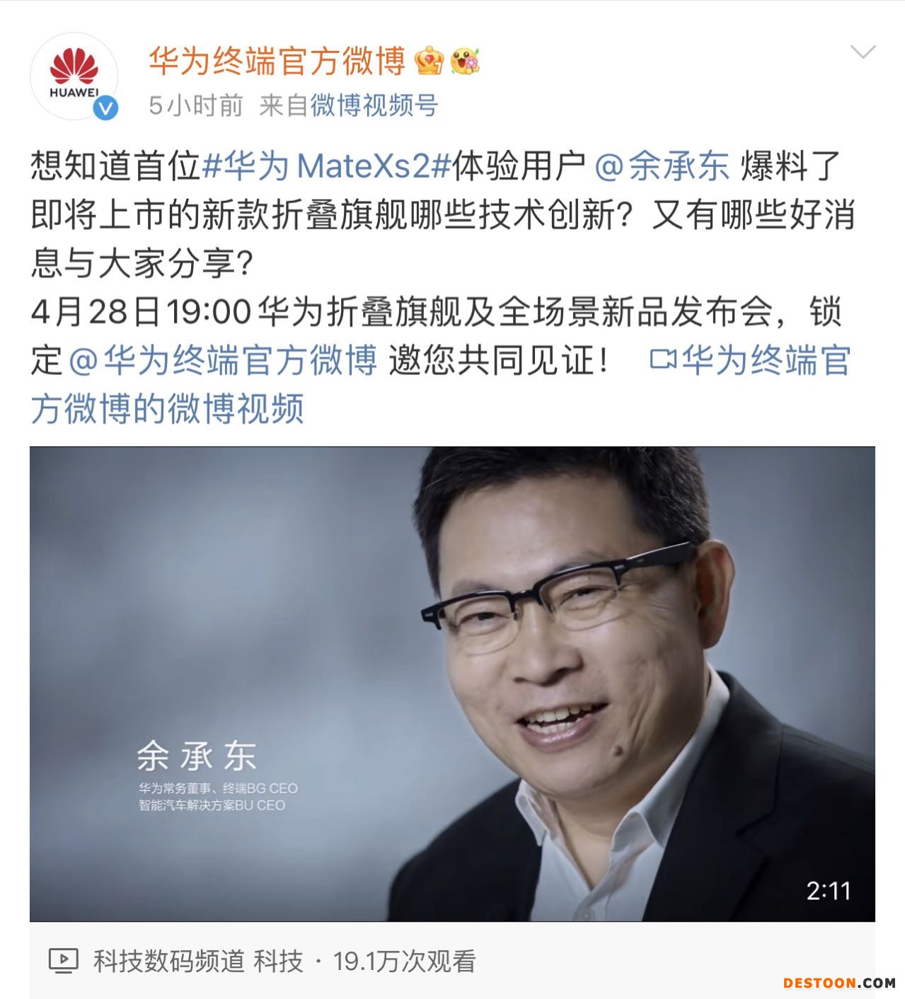 长江日报大武汉客户端4月27日讯(记者章胜)4月27日,华为终端官方微博发布了28日折叠旗舰及全场景新品发布会最新信息,将呈现Mate Xs 2折叠屏手机、Watch GT 3 Pro 手表等多款新品。华为常务董事、终端BG CEO、智能汽车解决方案BU CEO余承东表示,华为手机供应获得极大改善,“今年我们华为手机开始回来了。所以大家想买华为产品、华为手机能买到了。”