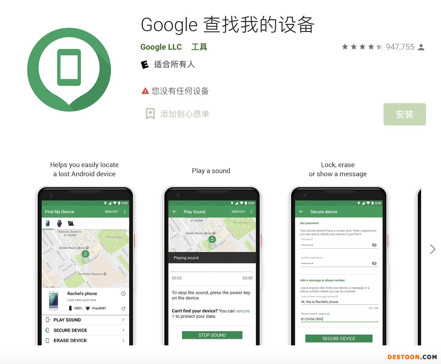 Google 已经推出一个名为“Google Find My Device”(Google 查找我的设备)的应用,而这款应用最初上线时名为“Android Device Manager”,这一点通过应用网址中的“adm”也能看出。这款应用目前只提供查找 Android 手机的功能,但从改名这一点可以看出 Google 对它抱有更高的期望。