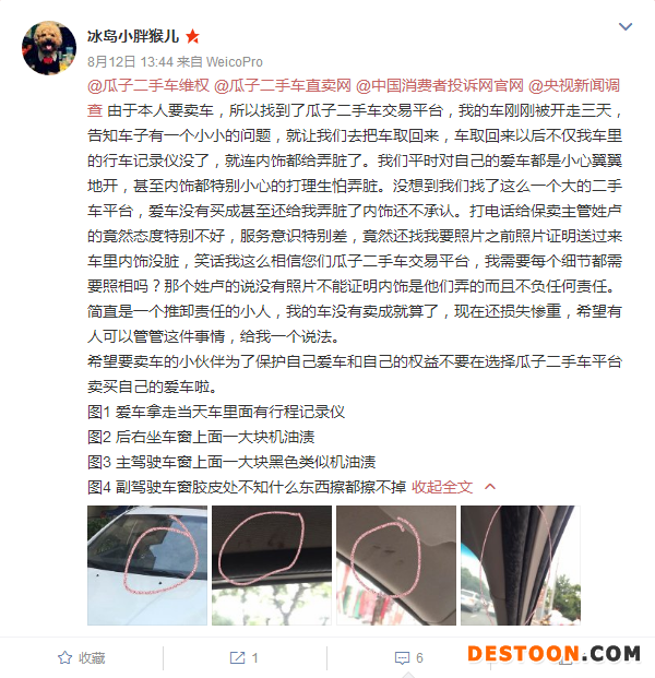 车主怒怼瓜子二手车车子放平台仅三天就被糟蹋