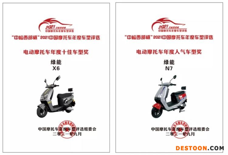 在“中检西部杯”2021中国摩托车年度车型评选中,绿能线从众多产品中脱颖而出,分别荣获2021中国电动摩托车年度十佳车型奖及2021中国电动摩托车年度人气车型奖,绿能自主外观设计水平实力有目共睹。