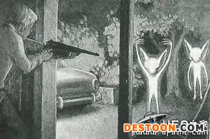 当晚,家人就听到房子外面有奇怪的声音。于是家里的男主人就拿着枪冲了出去。突然,一只不明生物从黑暗中爬出来,危险地接近男主人。