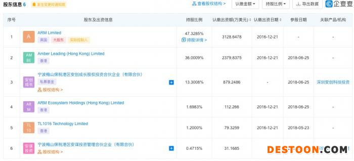 仅从目前的工商资料来看,Arm Limited是持股约47.33%的大股东,其他股东还包括部分境外公司和国内私募基金。此前官方提供的信息显示,总体来说,安谋科技是由Arm占股49%,中方资本持股51%。