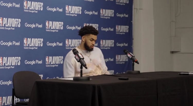 本场比赛,森林狼球员唐斯19投6中得到18分10板4助1抢断1盖帽。赛后他接受了采访。