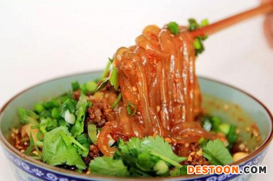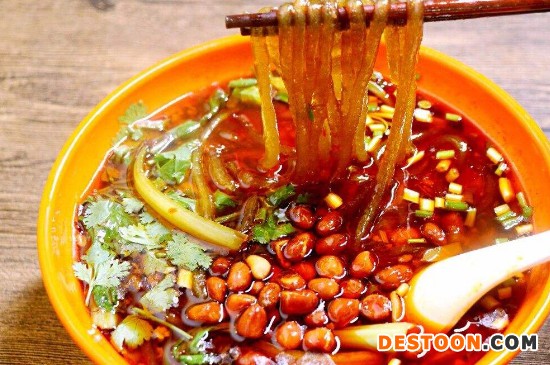 而酸辣粉是我国四川、重庆等地的传统小吃,它以酸、辣的口感而得名,正宗的酸辣粉是使用手工制作的红薯粉为原料,再添加合适比例的红薯、豌豆以及其它调料进行调和而成。