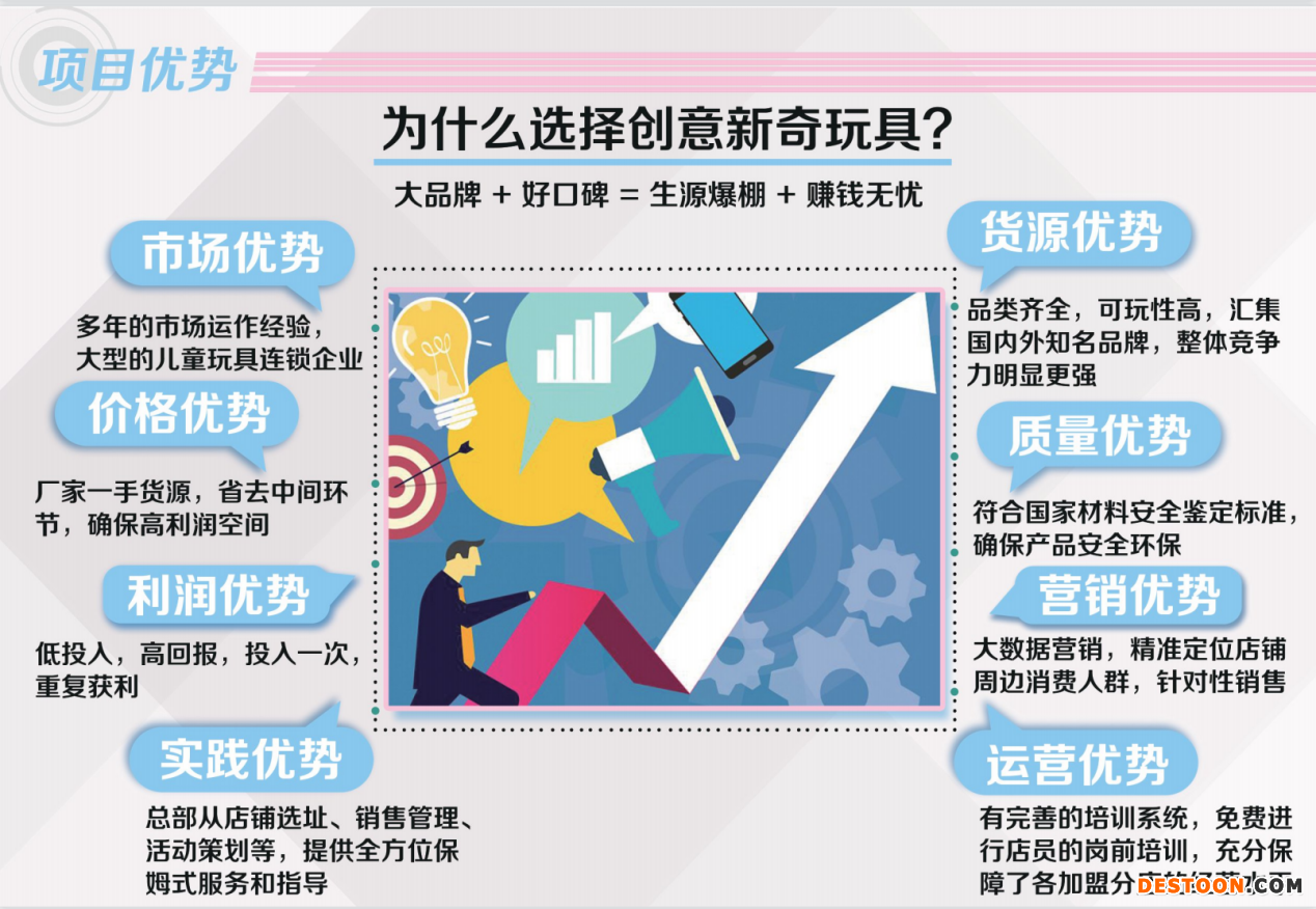 对成都爱玩聚玩具而言,即使是毫无经验的加盟者,只要和成都爱玩聚玩具的发展方向一致,踏实肯学,就能够成为风雨同舟的盟友,成都爱玩聚玩具的盈利即盟友的盈利,在保障盟友利益方面,成都爱玩聚玩具将不遗余力,全程扶持每一位创业者。