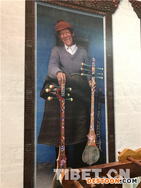图为“2017年北京市支援合作地区特色产品展销会”上,来自西藏的公司展位里挂的手工艺人照片。