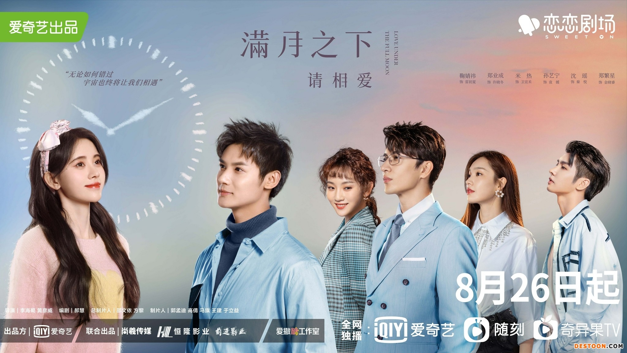 今日,由鞠婧祎、郑业成领衔主演,米热、孙艺宁、沈瑶、郑繁星等主演的都市科幻爱情剧《满月之下请相爱》正式定档8月26日。该剧由爱奇艺出品,尚羲传媒、恒隆影业、前进影业联合出品,爱奇艺爱撒糖工作室、遇见春天影视制作,李海蜀、黄彦威联合执导。从定档预告以及海报能充分的感受到雷初夏与许晓冬浓浓的恋爱氛围,令人期待他们会发生怎样高甜又搞笑的故事。