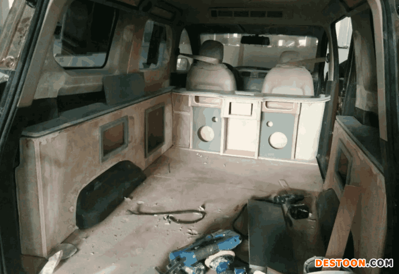要知道改造一辆现成的车,改造内饰比改造外观的工程量更加多,因为如果要改造内饰,就必须把内部的所有东西,包括座椅、面板等东西全部拆除,就等于把车内都掏空了。不过幸好面包车本来就是敞开型的,所以相对于其他车来说更加好操作,无论是拆卸还是安装都是比较简单的。